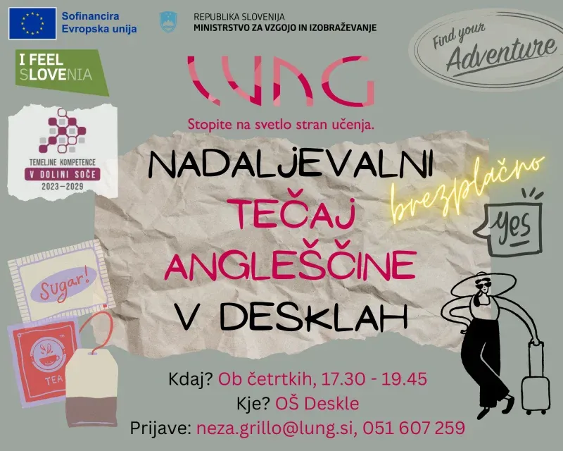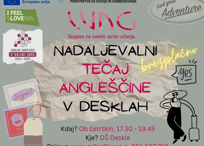 Vabljeni na 50-urni brezplačni osvežitveni oz. nadaljevalni TEČAJ ANGLEŠČINE, ki bo potekal v Desklah.